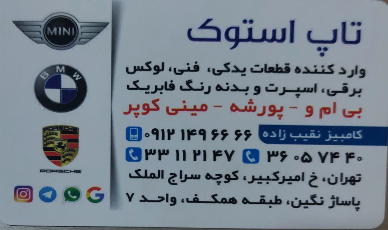 وارد کننده ی قطعات یدکی فنی لوکس .برقی.اسپرت و بدنه رنگ فابریک پورشه-بی ام و -مینی کروپ